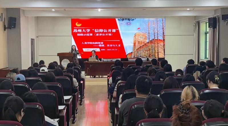 5月21日,国产自拍在线 在天赐庄校区崇远楼201会议室举行“人类学的实践智慧——健康、社会与人文”苏州大学“信仰公开课”校级示范课(“素养公开课”)活动。美国加州大学圣迭戈分校人类学博士、芬兰赫尔辛基大学博士后研究员、心理(医疗)人类学博士吴桦老师担任主讲嘉宾,东吴国产自拍在线何芊蔚副教授担任本场讲座主持人,院团委书记陈晓宇、国产自拍在线 副教授古海波出席活动。2025年苏州大学“青年马克思主义者培养工程”春季班学员、国产自拍在线 “青年马克思主义者培养工程”春季班学员、学生骨干等参加活动。