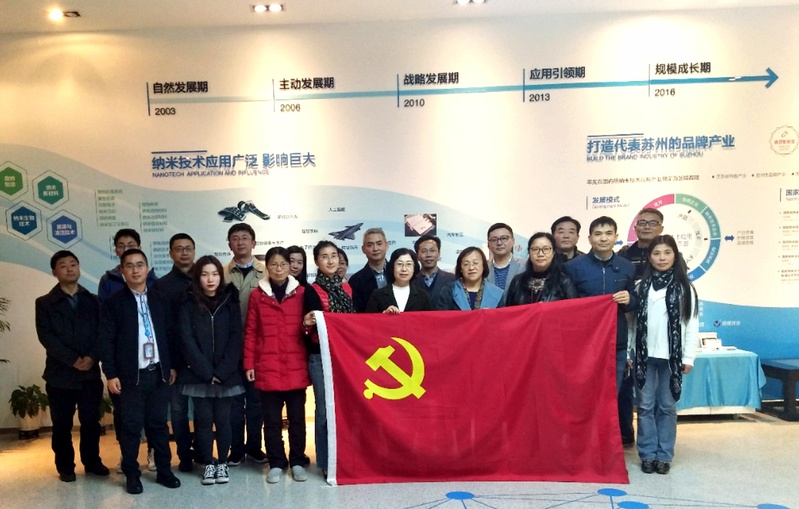 全体党员教师在苏州纳米科技发展有限公司张峰副总裁的带领下,参观了苏州纳米城展览馆,了解了纳米材料的研发历史、技术应用以及苏州纳米城的主要布局等内容。大家饶有兴趣地参观了纳米新材料在日常生活中的应用展示,切身感受到改革开放40年来我们国家突飞猛进的科技进步速度。